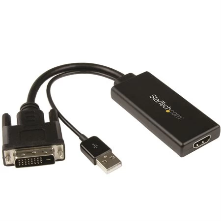 Cet adaptateur DVI vers HDMI vous permet de connecter votre ordinateur portable ou de bureau DVI à un écran ou un projecteur HDMI. L’adaptateur fonctionne avec n’importe quelle sortie DVI, mais lorsque vous le connectez à votre ordinateur Windows, l’adaptateur prend également en charge l’audio USB natif, vous permettant d’ajouter l’audio de votre ordinateur au signal de sortie HDMI. Si vous souhaitez transmettre uniquement de la vidéo, vous pouvez simplement utiliser la connexion DVI. Si vous souhaitez transmettre de l’audio ainsi que de la vidéo, vous pouvez également brancher le connecteur USB. Sans adaptateur d’alimentation externe nécessaire. Vendu à l’unité. Noir.