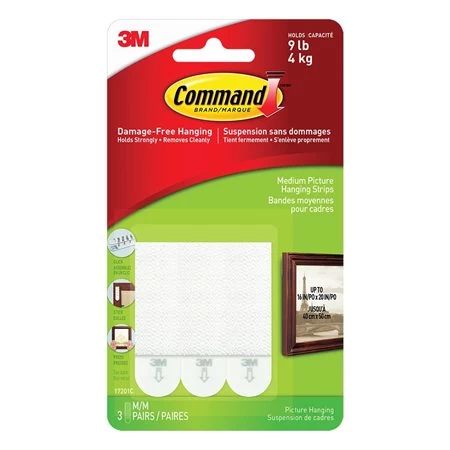 Autoadhésives. N’endommagent pas les surfaces. Étirer pour enlever.