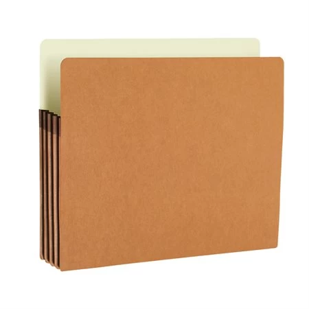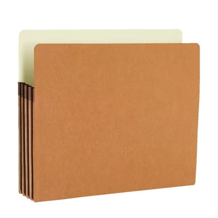 Expansion de 5-1/4 po. Fibre rouge. Onglet coupé droit. Nylon recouvrant le devant et l’arrière. Soufflets renforcés de nylon. Sans acide. Matières recyclées : 100 %. Postconsommation : 30 %.