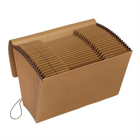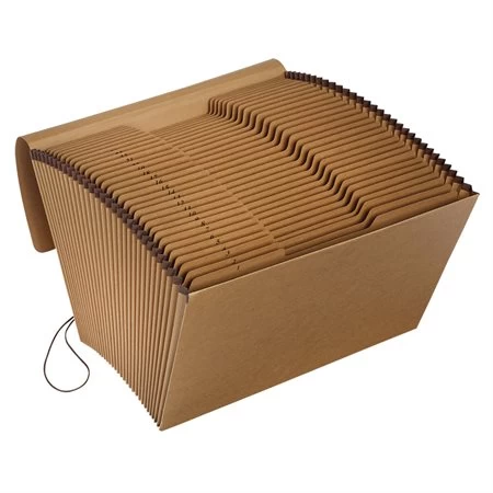Rabat avec fermoir élastique. Titres de section pré-imprimés. Goussets renforcés, carton double épaisseur à l’avant et à l’arrière. Fibre postconsommation : 10 %.