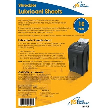 Lubrifie les lames de déchiqueteuse pour maintenir une coupe parfaite. Aide à prévenir le bourrage de papier. Réduit le bruit et la poussière de papier. Paquet de 10.