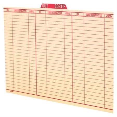 Indiquez clairement lorsqu’un dossier a été retiré en insérant un guide de sortie à la place. Minimum de 10% matières recyclées. Sans acide. Onglet supérieur. Bilingue. Boîte de 100.