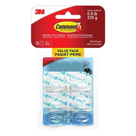 Pour suspendre sans causer de dommages. Supporte 0,5 lb. 18 crochets et 24 bandes. Clair.