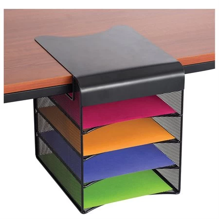 S’adapte à un bureau jusqu’à 1 3/4 po d’épaisseur et se fixe avec la vis de serrage incluse. 4 compartiments et un plateau à crayons. 10-1/4 x 12-3/8 x 14-3/8 in. H. Noir.