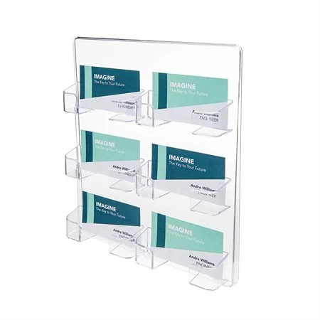 Acrylique. Chaque compartiment peut contenir jusqu’à 80 cartes. 6 compartiments, 8-3/8 x 1-1/2 x 9-3/4 po. Clair.
