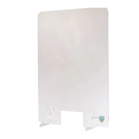 Protection contre la toux et les éternuements. Couvre le visage et le corps. Panneau en plastique transparent. Incassable. Autoportant. Portable. Non invasif. Pour mettre sur un comptoir ou une surface plate. Écran de protection. Épaisseur de 1/4 po. Ouverture de 7 x 4 po dans le bas. Aucun assemblage requis. 3 dimensions disponibles. Pour l’entretien des panneaux, il est recommandé d’utiliser une solution à base d’eau et de savon à vaisselle. L’utilisation de produits à base d’alcool est à proscrire puisqu’ils risquent d’endommager la surface des panneaux. Vendu à l’unité. * PRENDRE NOTE QUE LE PRODUIT EST LIVRÉ AVEC UNE PELLICULE PROTECTRICE BLEU SUR CHAQUE CÔTÉ QU’IL FAUT RETIRER AVANT L’INSTALLATION*