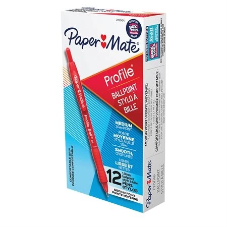 1,0 mm. Pointe moyenne. Prise caoutchoutée et confortable. Non rechargeable. Boîte de 12.