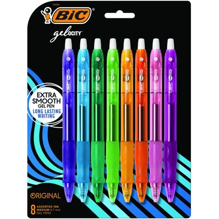 Écriture fluide et sans effort. L’encre sèche rapidement. Pointe moyenne. 0,7 mm. Paquet de 8. Couleurs variées.